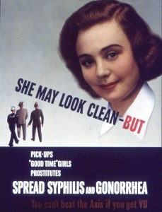 By World War I, the focus had shifted back to men, in whom STDs were the No. 1 cause of disability in the military. Women were returned to the role of scapegoat: “A German bullet is cleaner than a whore,” U.S. soldiers were told, typical of government propaganda that cast women as “vectors.” In fact, attempts to quarantine women thought to be “spreaders” of STDs resulted in more than 20,000 female detainees being held in camps.